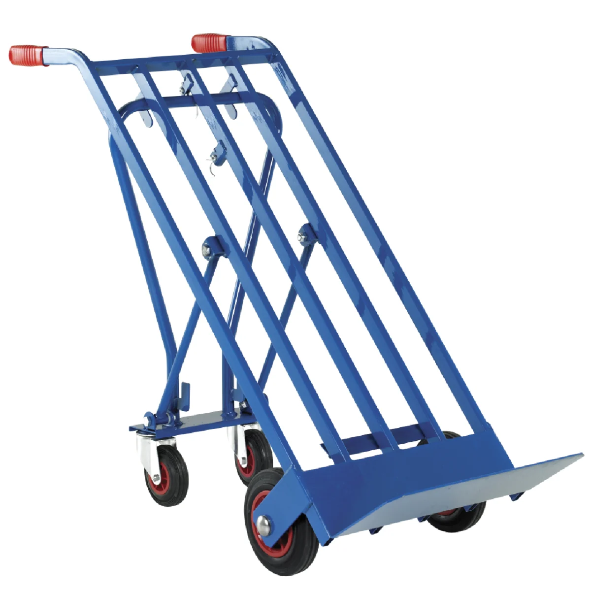 What sets this beauty apart? Its 3-in-1 position versatility – it’s like the Swiss Army knife of sack trucks! Transform it effortlessly into a 4-wheel transporter, a platform truck, or a classic sack truck, depending on what the day throws at you. Need to zip around with a massive load? The 4-wheel mode has your back. Got a flat stack to shift? Platform truck to the rescue. Or maybe you’re just lugging sacks like it’s the good ol’ days? Sack truck mode it is! With positive retention in every position, you’ll enjoy rock-solid stability – no wobbles, no worries, just pure lifting bliss.