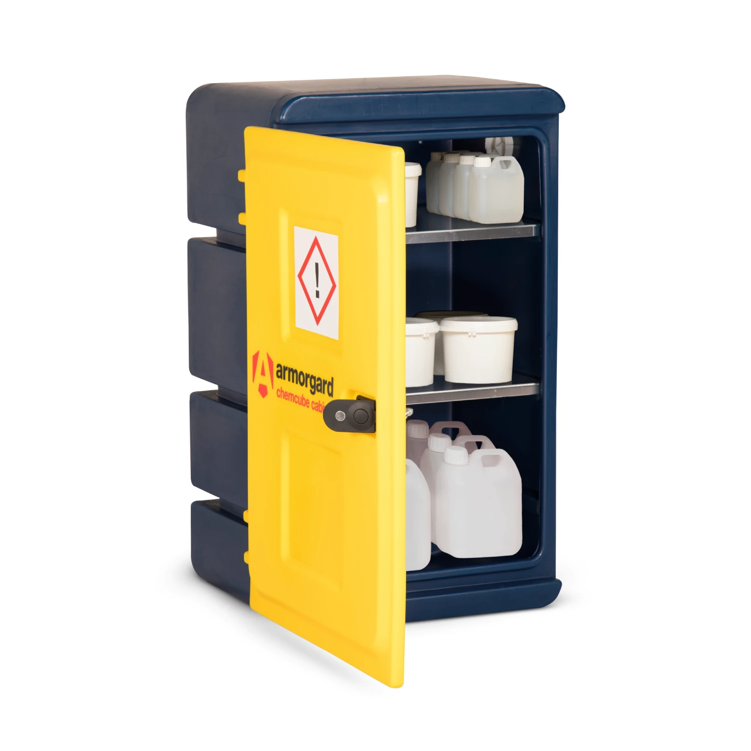 Whether you are outfitting a busy agricultural facility, a specialized factory, or a dynamic laboratory, the ChemCube offers unparalleled versatility. The high-visibility yellow and blue unit comes complete with the relevant hazard warning signage already securely attached. For ultimate space-saving convenience, the smallest size variation (CCC1) is even fully wall-mountable.