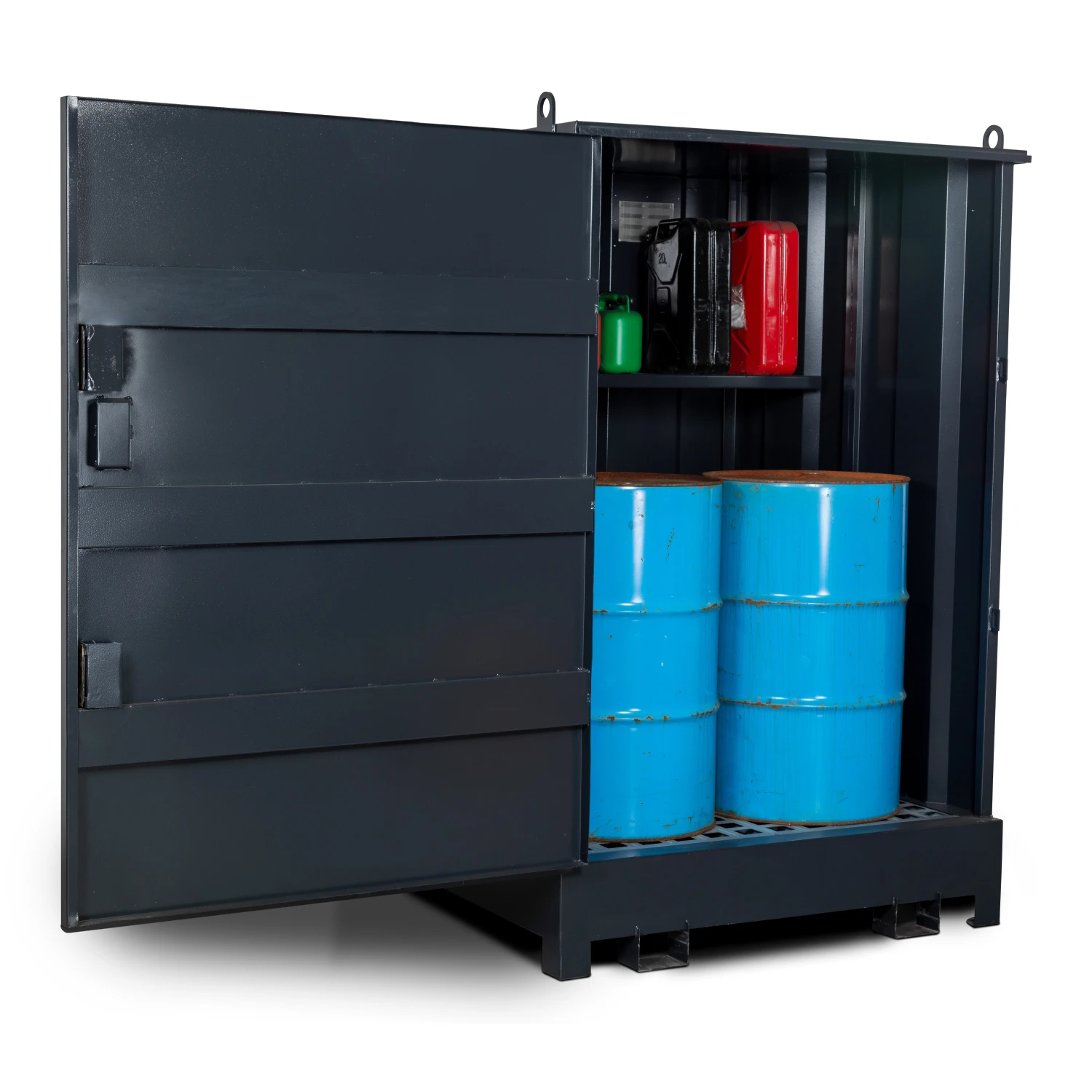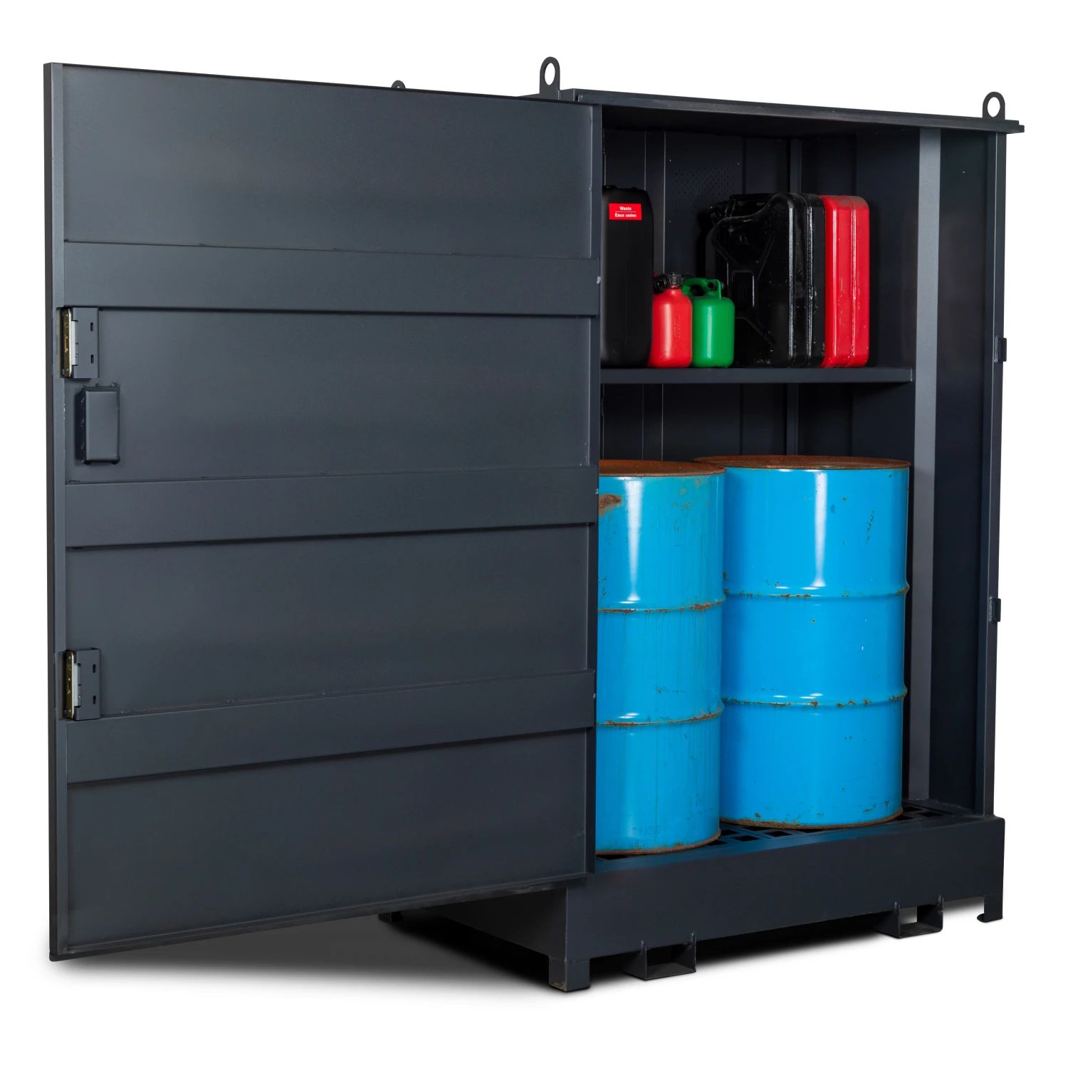 - Security: Heavy-duty doors featuring 5-lever deadlocks protect high-value chemicals and fuels from theft.