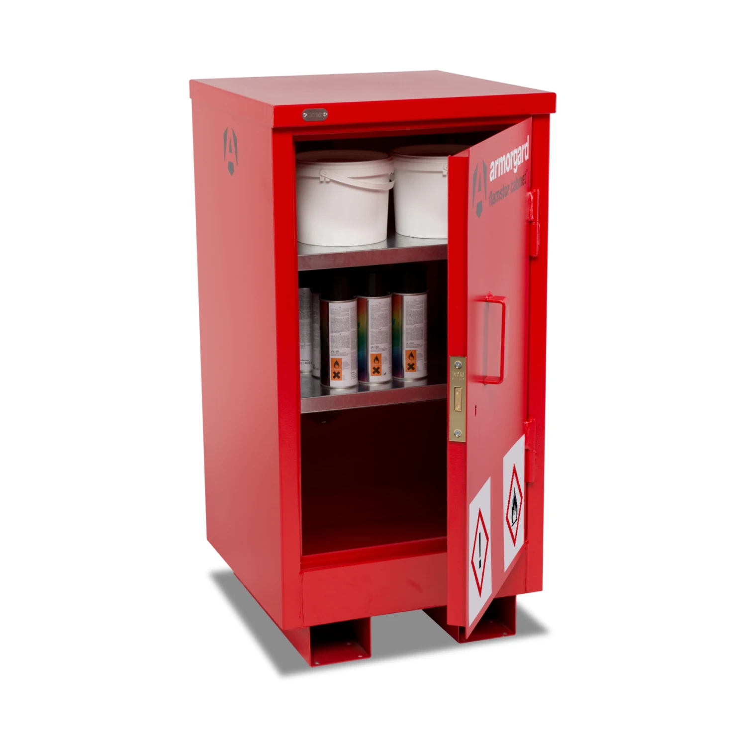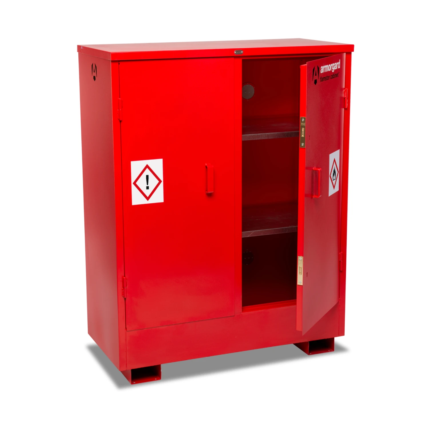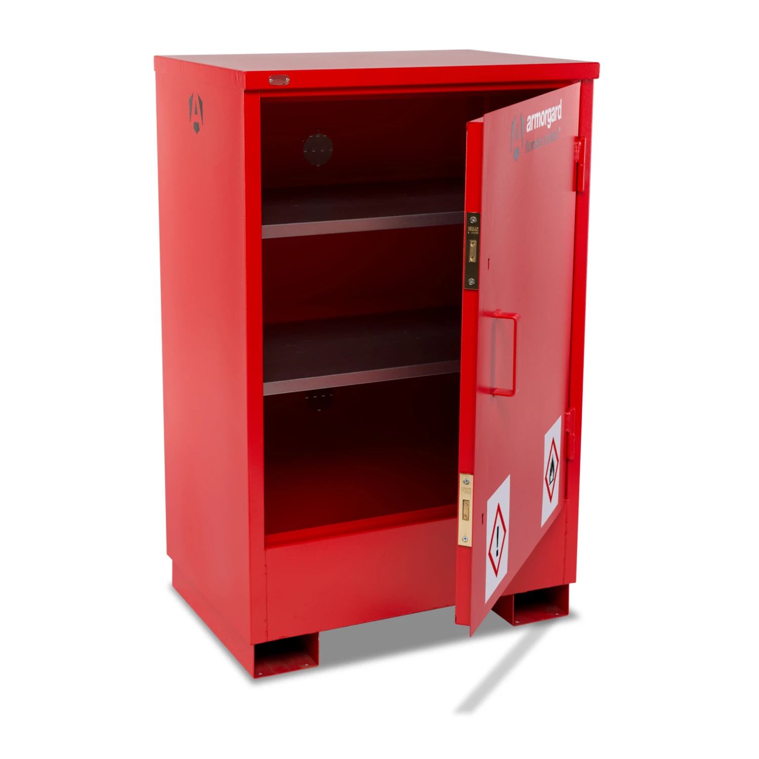Managing hazardous materials on-site requires uncompromising safety and strict regulatory adherence to protect your workforce. The Armorgard FlamStor Cabinet™ provides a robust, purpose-built solution to keep your hazardous substances safe, organised, and easily accessible. Designed to give you complete peace of mind, this cabinet ensures your site maintains full compliance with COSHH, Health and Safety Executive’s HSG51, and DSEAR standards, alongside standard GHS labelling requirements. Finished in a highly visible bright red powder coating for maximum durability, the cabinet instantly alerts personnel to its contents with relevant hazard warning signs fitted as standard.