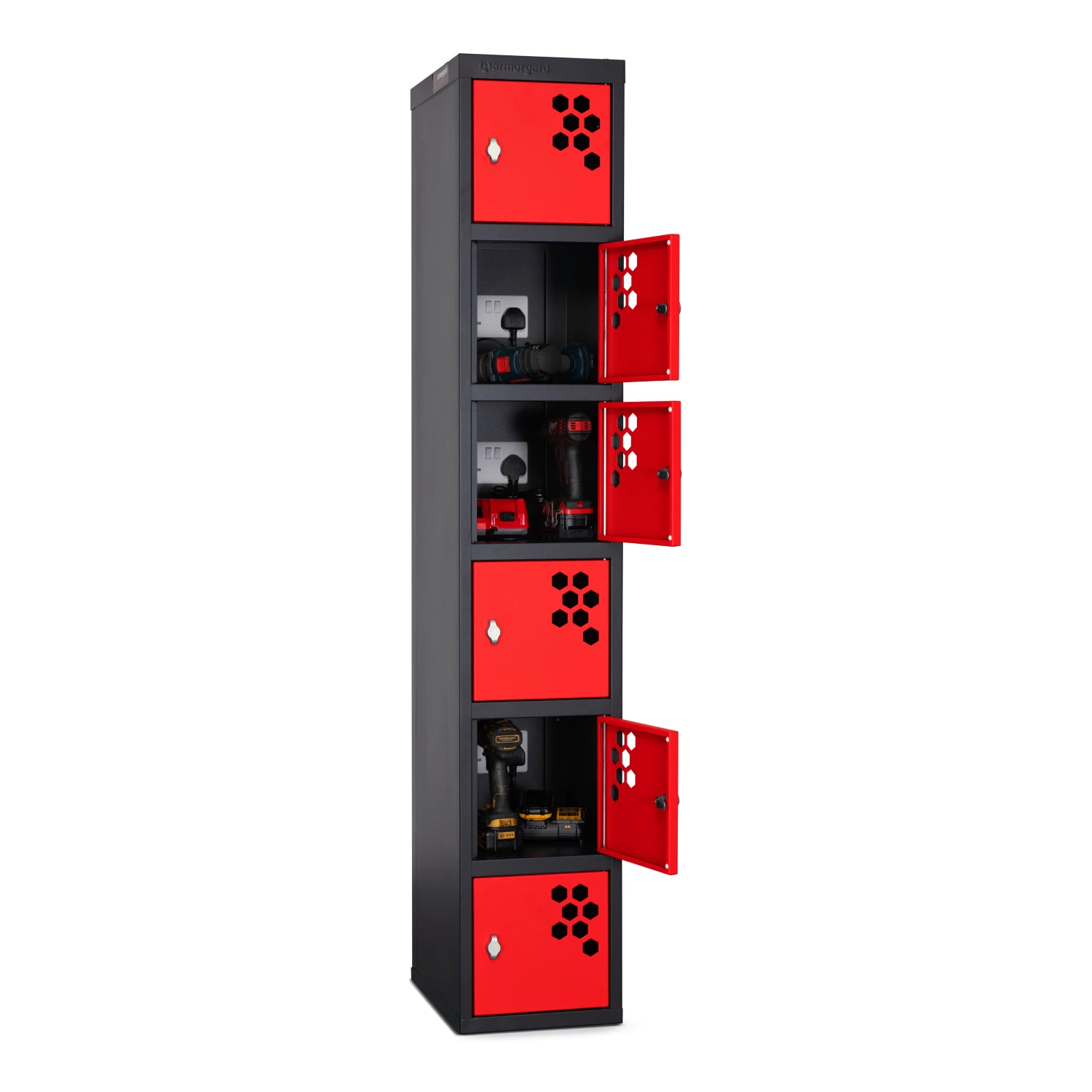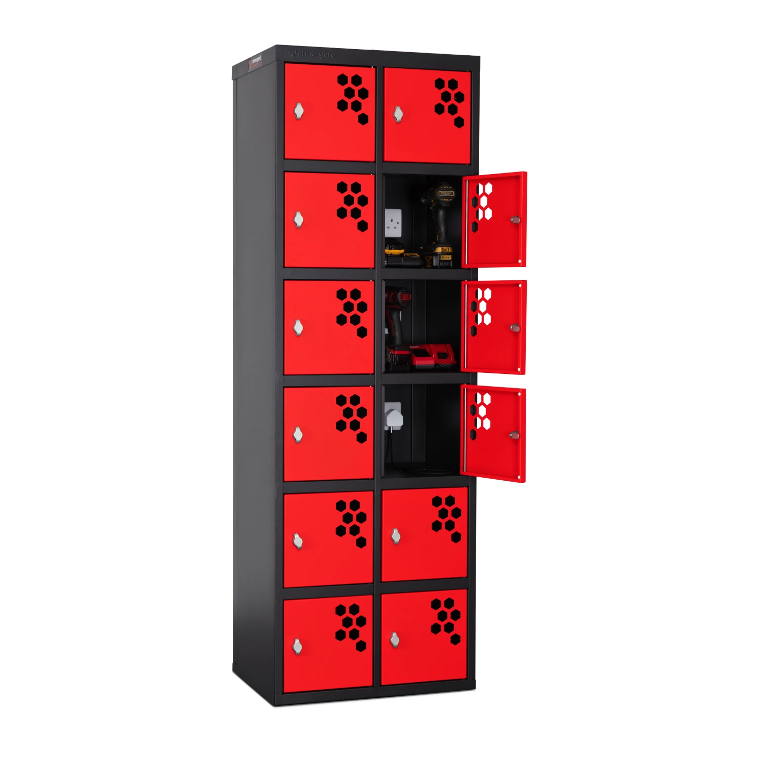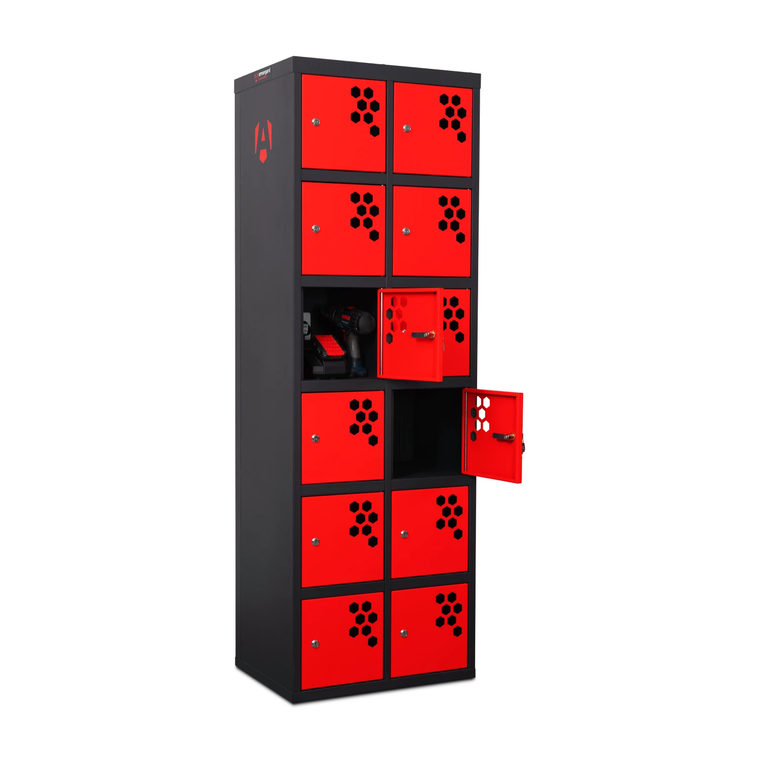 - Secure Charging: A reliable bank of 6 or 12 secure lockers designed for power tool batteries.