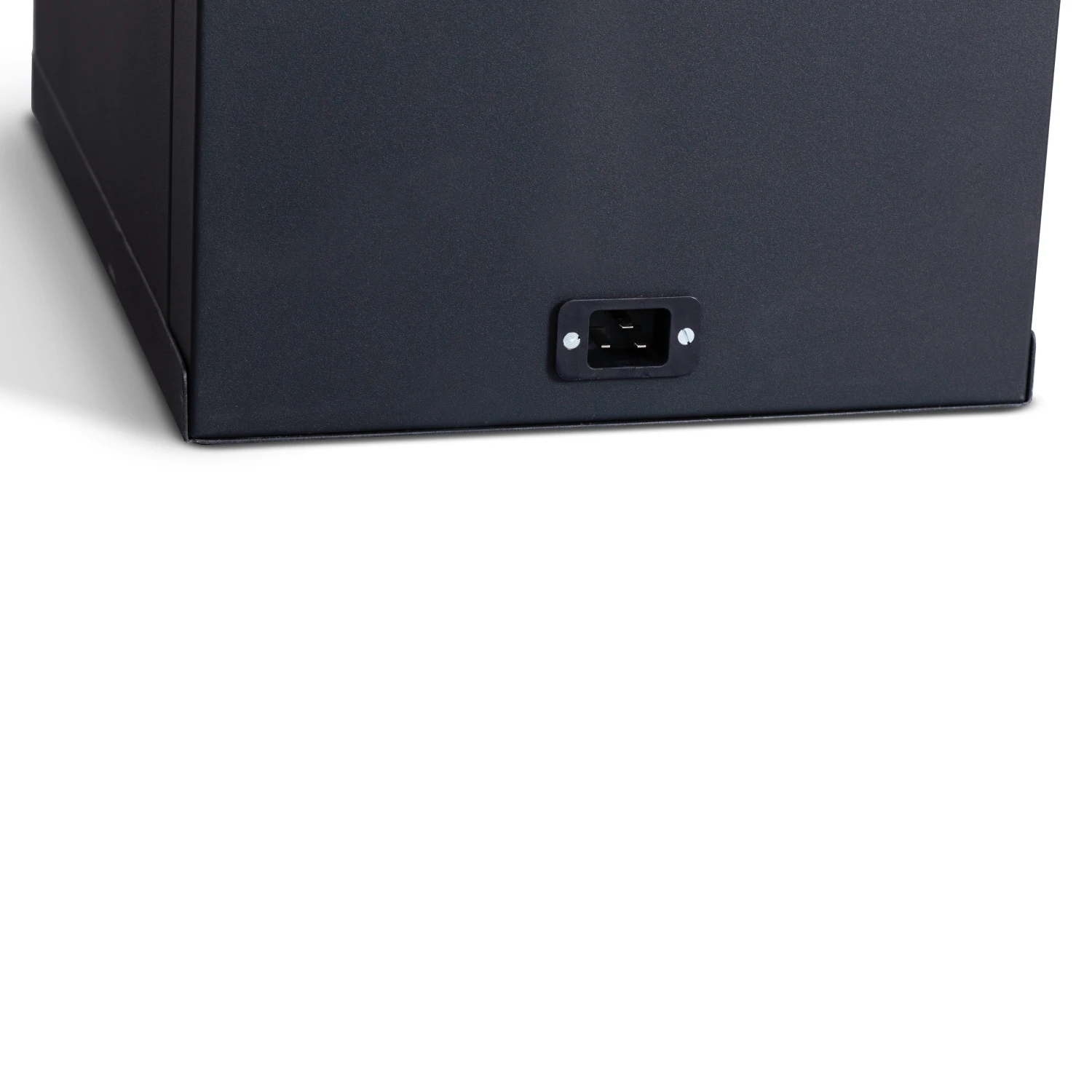 Each compartment provides a spacious locker space that easily fits large battery chargers. Inside, users are provided with double 240v sockets specifically dedicated to charging batteries. Electrical safety is paramount; the 240V power supply operates as an RCD protected unit, meaning it is RCD protected at the source. To further protect your assets, the distinct perforated holes are engineered to help ventilation and air flow, preventing high-value batteries from overheating while they power up.