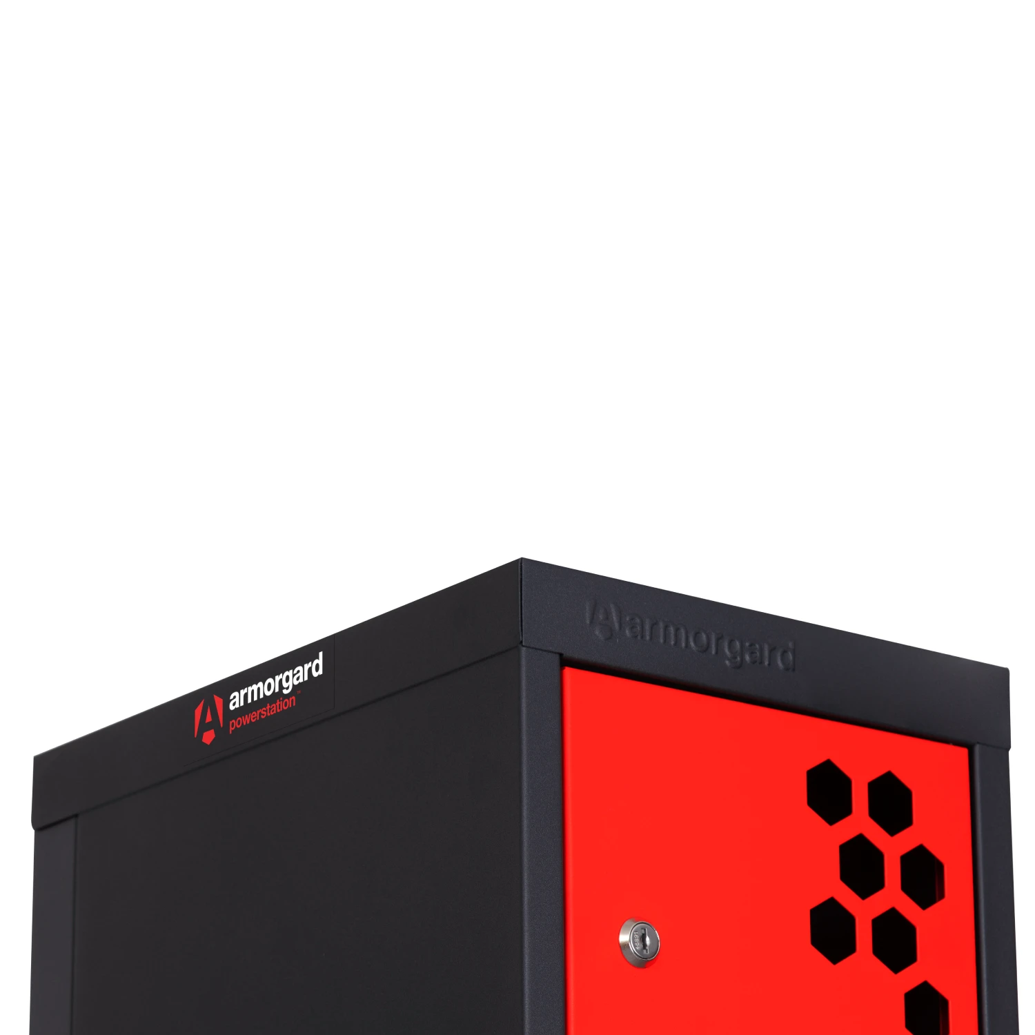 Powered equipment and mobile devices are especially vulnerable to theft when being charged on site. The Armorgard PowerStationâ„¢ provides a new and improved secure battery charging solution designed specifically for low risk batteries. Available as a bank of 6 or 12 secure charging lockers, this segregated system allows you to charge your equipment unattended, confident in the knowledge that it is safe from thieves.