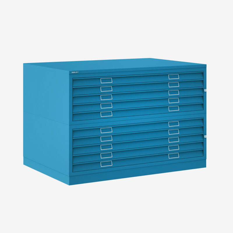 The Bisley A0 ten-drawer plan file is the definitive high-capacity storage solution for preserving large-format blueprints and artwork in perfect condition. Featuring a modular, two-section design for easier installation, this heavy-duty steel unit offers maximum organisation for the most demanding professional environments.