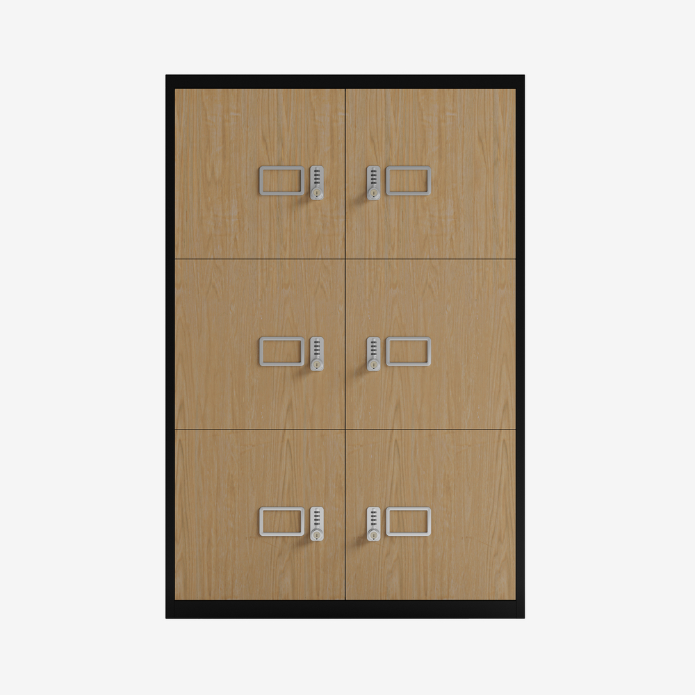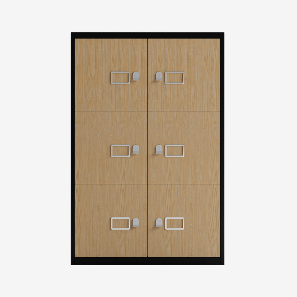 Bisley LateralFile Lodge – 6 Door Locker Bank – 800W Oak Front
