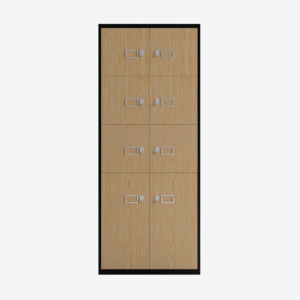 The Bisley LateralFile Lodge 8-door locker bank combines secure personal storage with a premium Oak-fronted finish to enhance any professional office environment. Arriving fully assembled and backed by a 10-year warranty, it is the ultimate high-end solution for reducing workplace clutter while maintaining a quiet, stylish workspace.