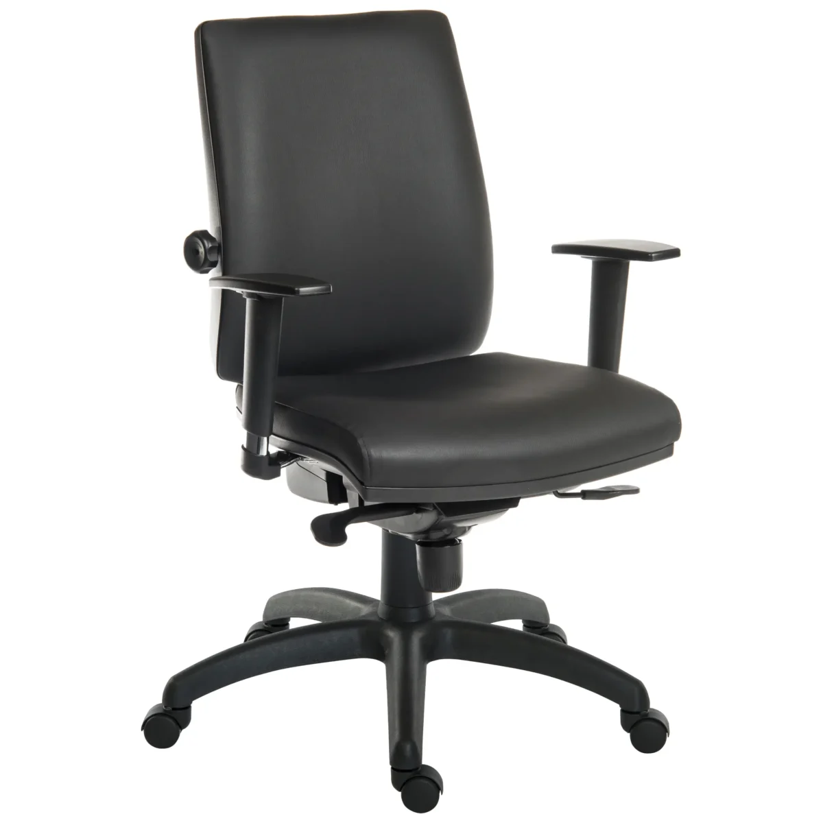 The Plus modelโs reinforced five-star nylon base glides effortlessly across hard floors or carpet tiles, while a heavy-duty gas lift keeps every user sitting at the perfect height. Spill your coffee? No problemโsimply wipe the leather-look upholstery and get straight back to business. Itโs contract seating without the maintenance headaches.