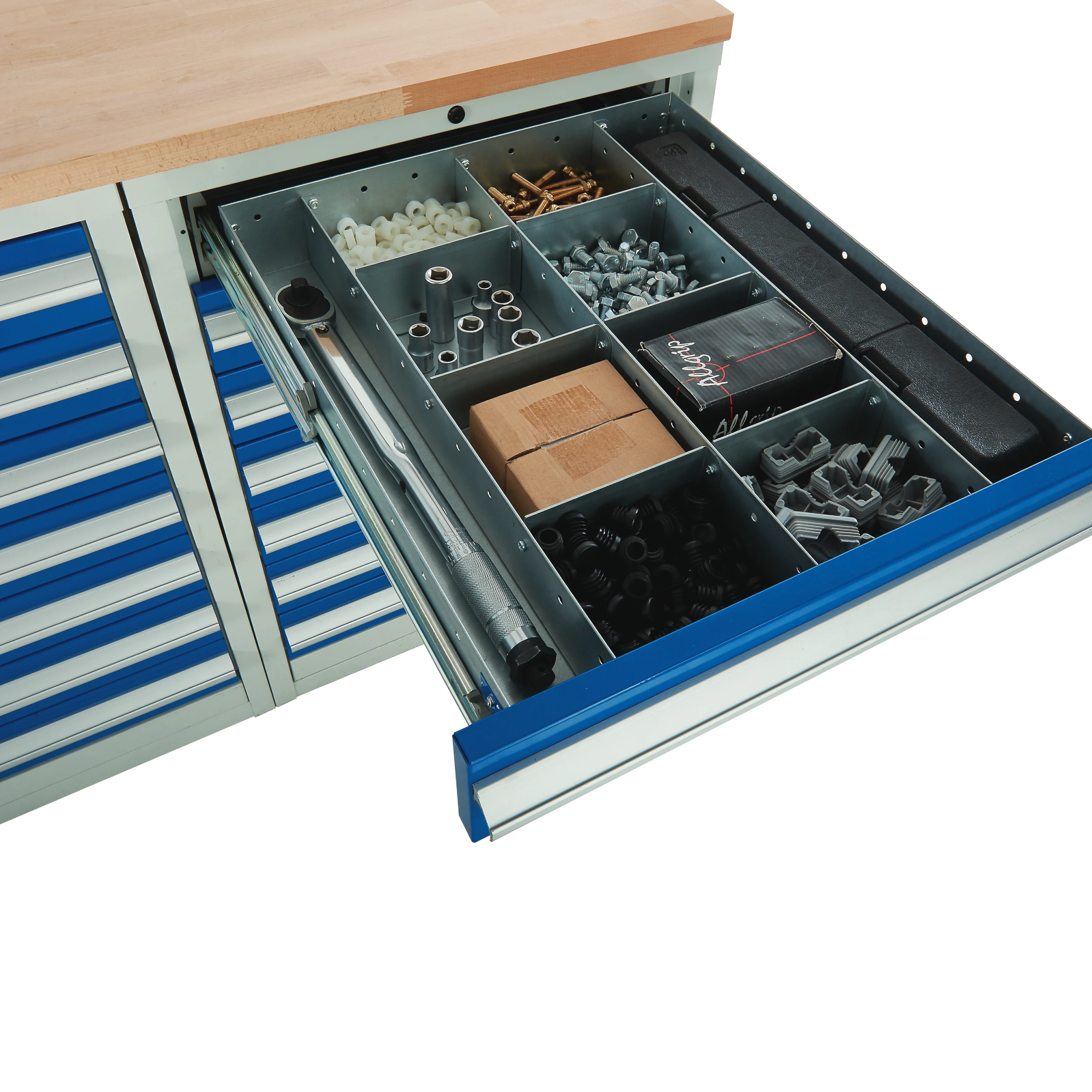Precision Organisation: deeply compartmentalised 10-section layout prevents parts migration and speeds up retrieval times.