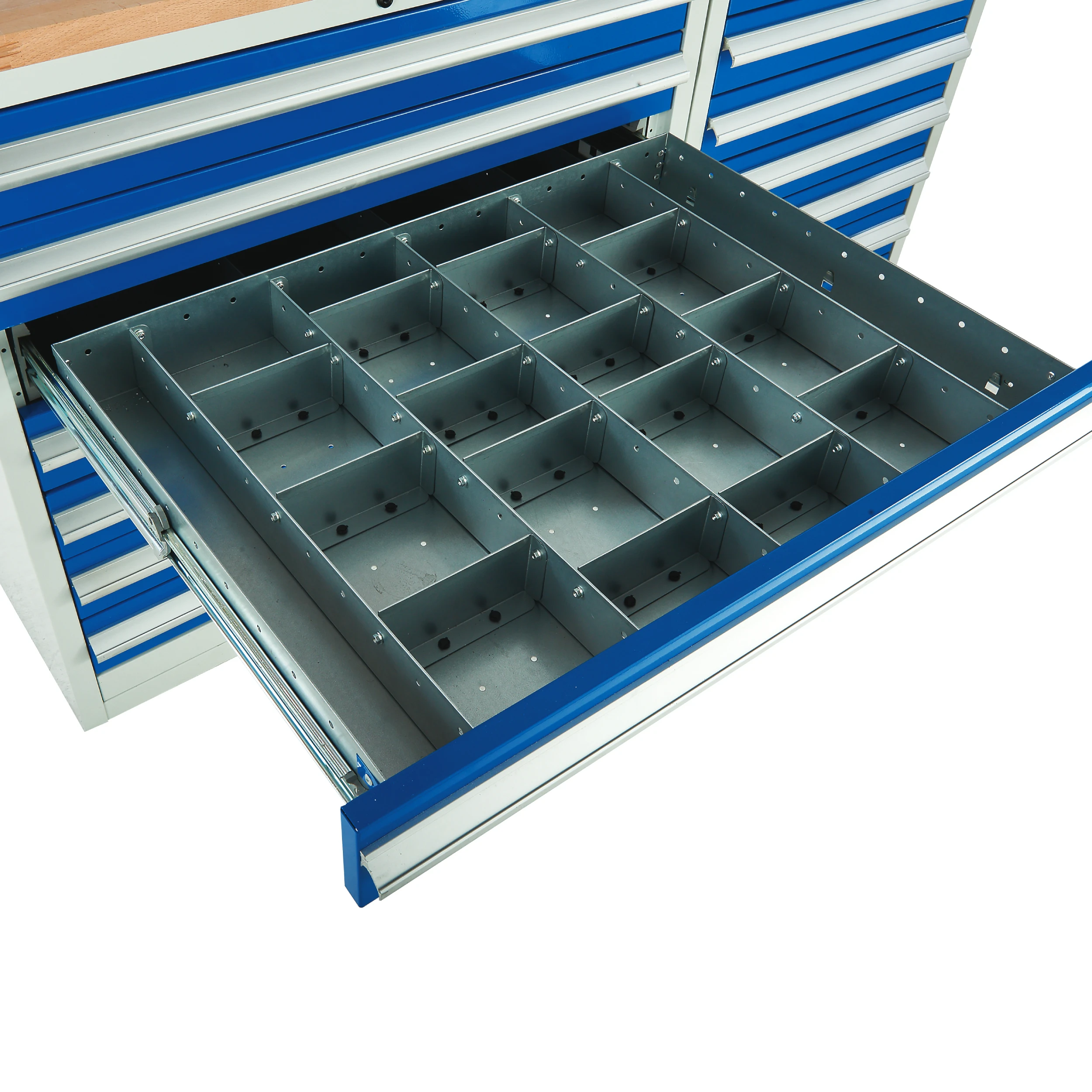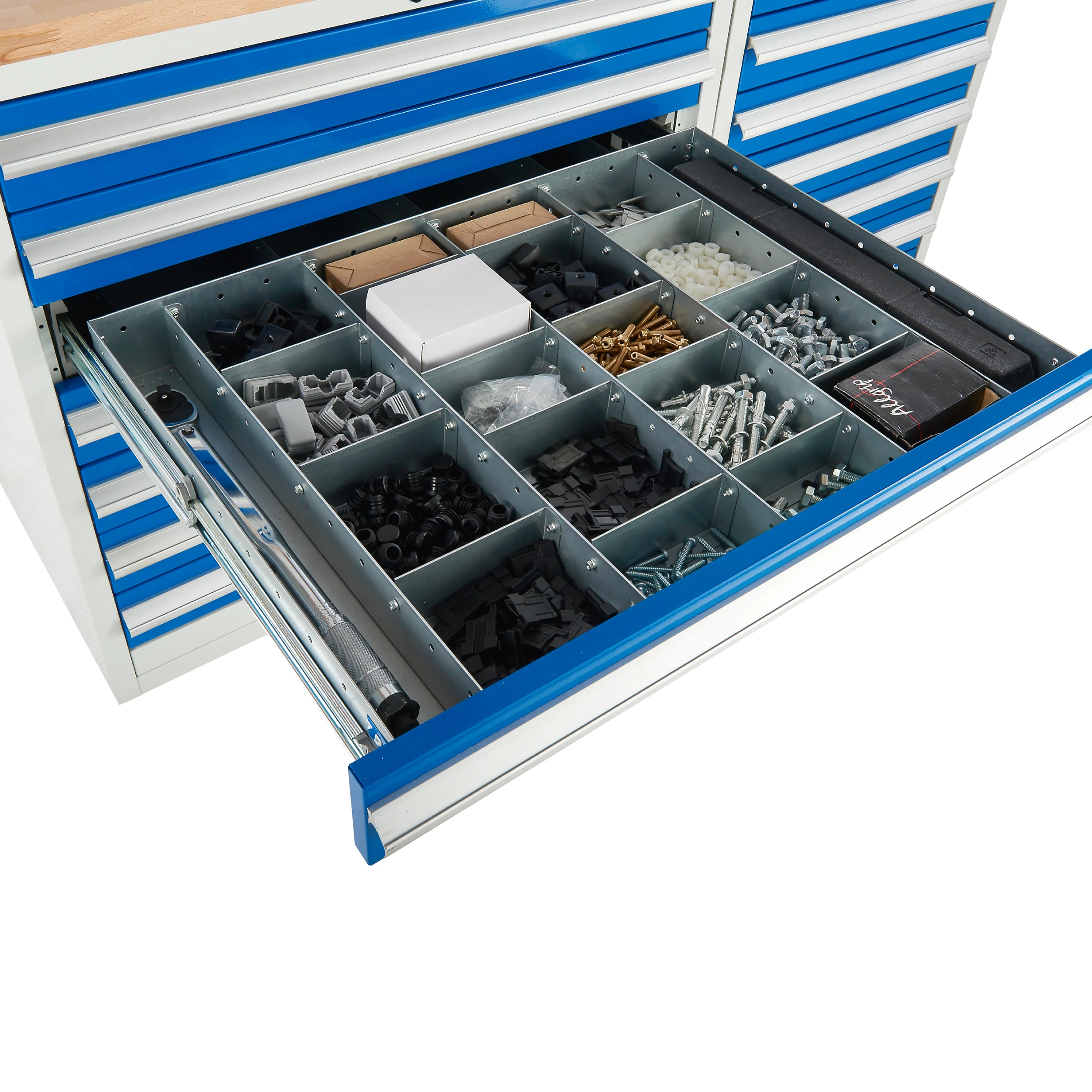 Built for the long haul, these dividers are crafted from robust galvanised steel, ensuring they won’t crack, warp, or degrade like standard plastic bins often do. This metal construction adds structural rigidity to the drawer and resists the wear and tear of daily industrial use. The system is fully modular and includes a complete set of nuts and bolts, allowing you to lock the dividers securely in place for a permanent, rattle-free installation. It is the professional choice for lean manufacturing environments where every item must have a clearly defined place.