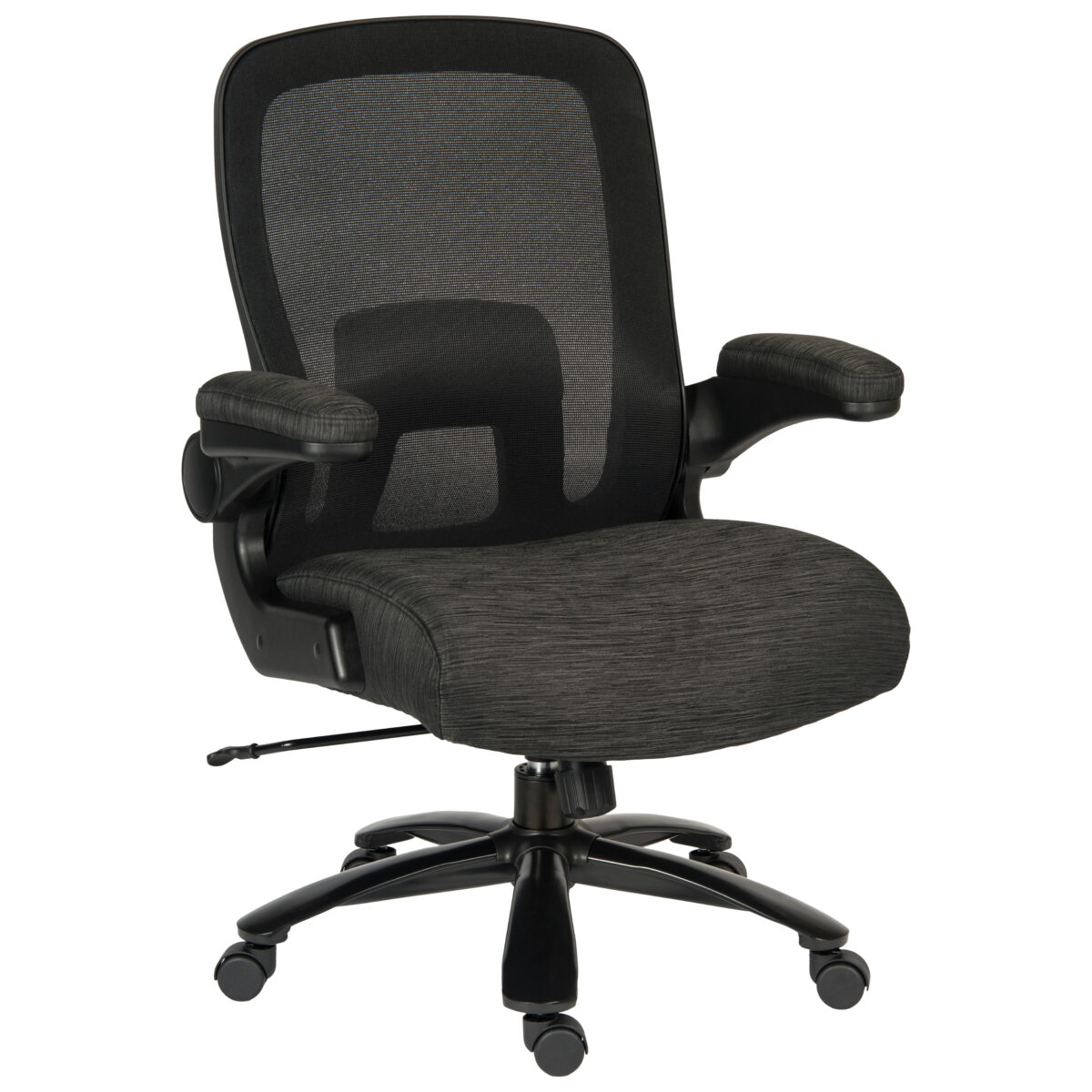 The chairโs breathable mesh back keeps you cool on intense days, while an inbuilt depth-adjustable lumbar pad targets lower-back support precisely where you want it. Need a little extra space? Simply flip up the soft-touch padded arms and slide the chair under the desk or invite a guest to perch. Every detailโfrom contrasting grey upholstery to impact-resistant componentsโhas been chosen to balance executive style with industrial strength.