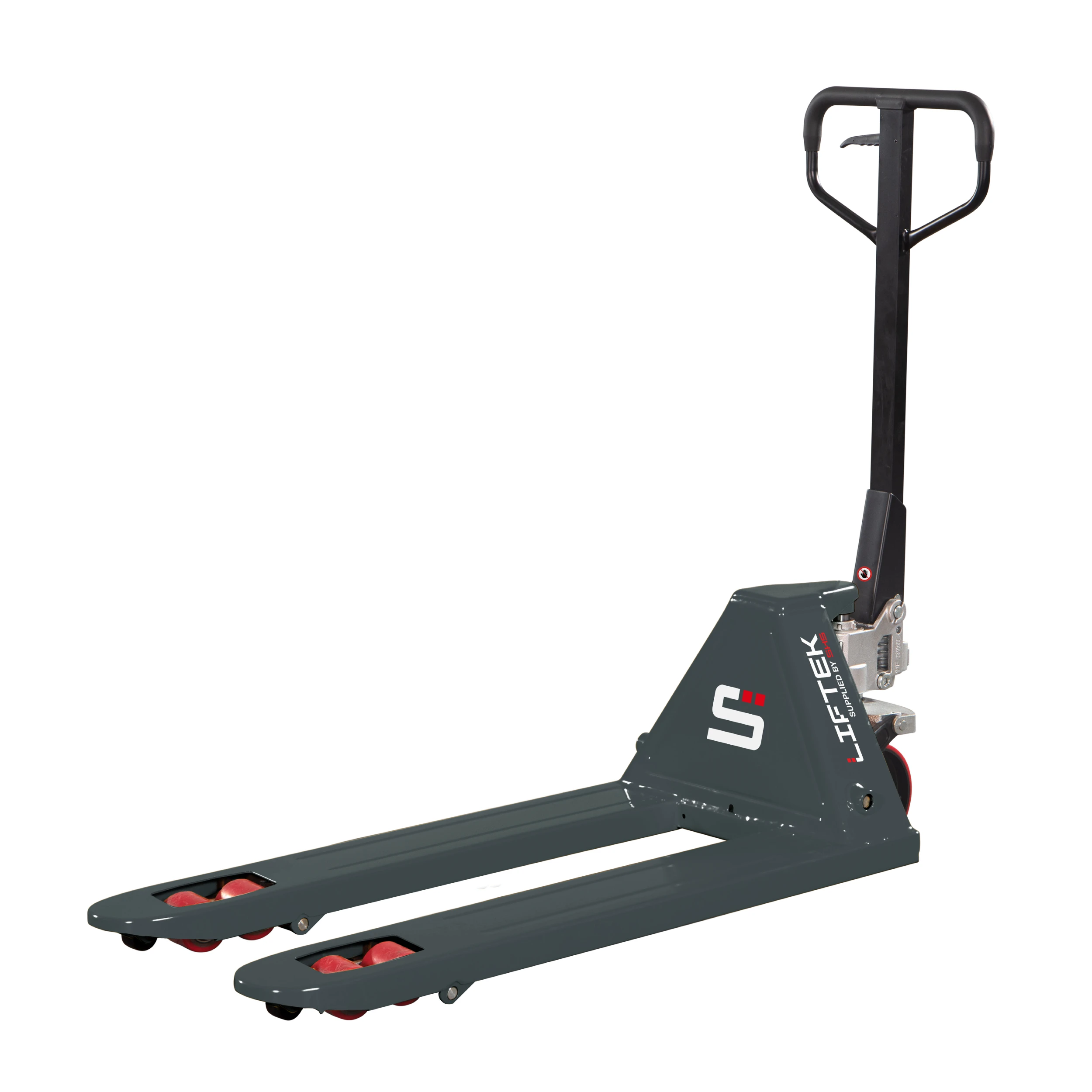 The Liftek Premium 2500kg Pallet Truck is a heavy-duty powerhouse featuring 1000mm forks, specifically designed for the seamless handling of Euro pallets in demanding environments. Experience effortless control and long-lasting durability with its ergonomic three-position handle and smooth-gliding tandem nylon rollers.