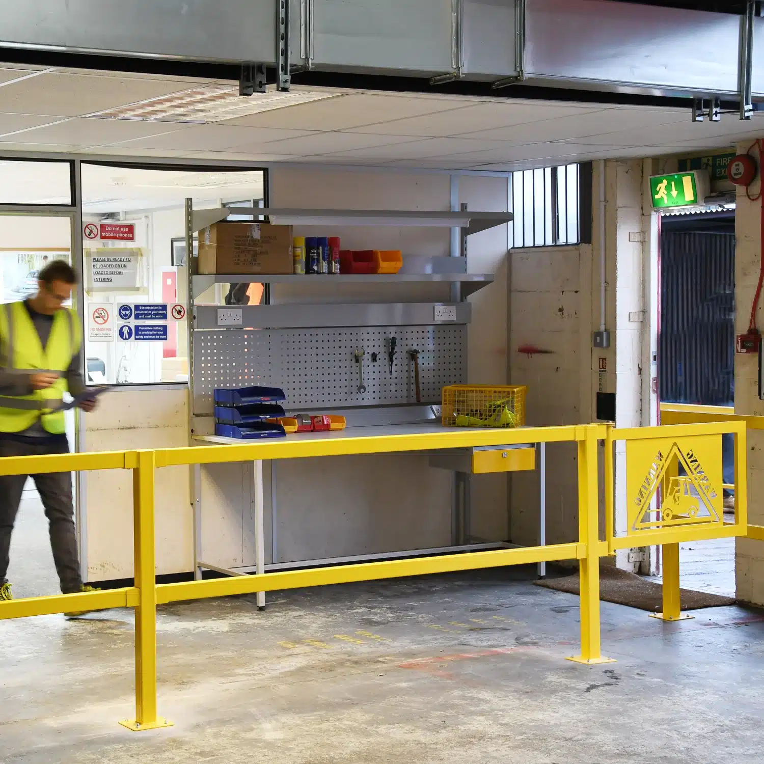 Industrial environments demand equipment that can withstand daily wear and tear. That is why these walkway barriers are manufactured from tough mild steel box section. To guarantee they instantly catch the eye of operators and pedestrians alike, every component is finished in a vibrant, powder-coated yellow. This high-visibility coating not only serves as a visual warning but also adds an extra layer of durability against scuffs and scrapes.