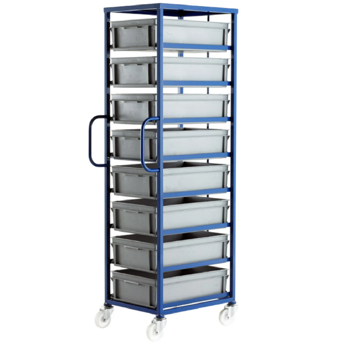 Let’s talk about what you’re getting – a complete kit with 8 Euro Containers (PC020) included, each measuring a spacious 600 x 400mm (L x W). That’s right, no faffing about buying extras; we’ve got you covered straight out of the box. These containers slide in like a dream, and thanks to the clever rear metal strap, there’s no risk of them doing a runner out the back when you’re loading up. Finished in a sleek blue epoxy coating, this rack doesn’t just perform like a champ – it looks the part too, adding a splash of style to your workspace.