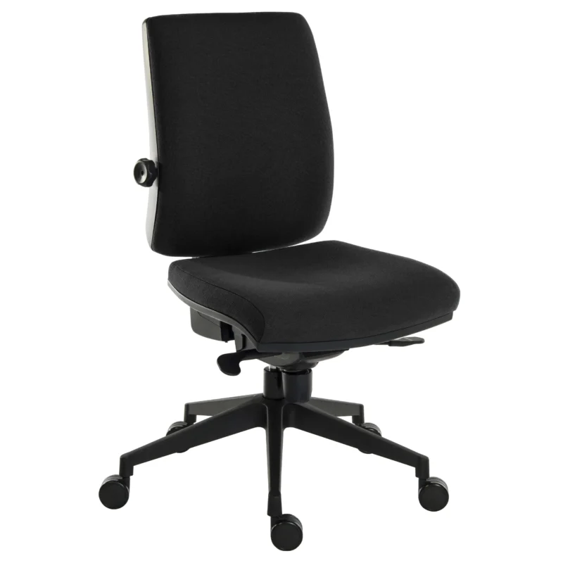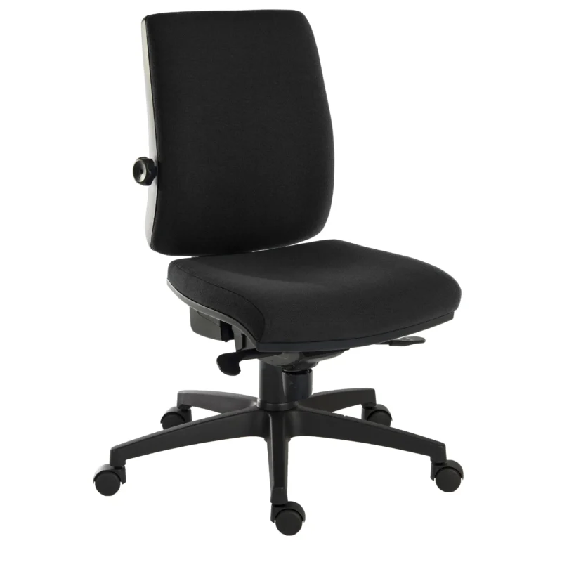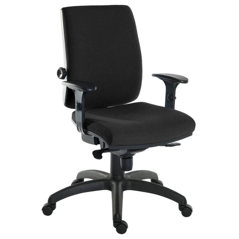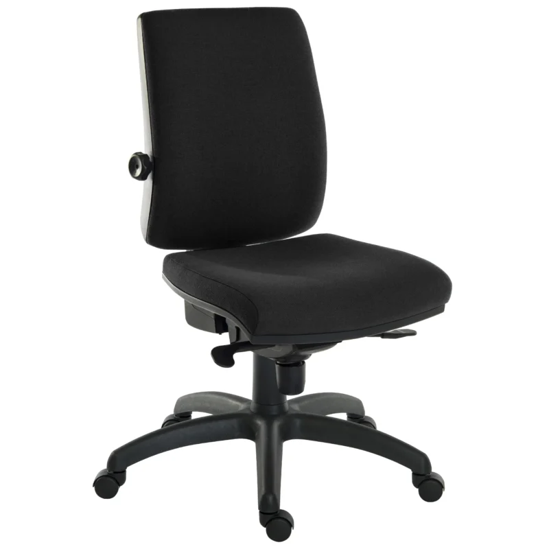 Built around a tough nylon five-star base (the Plus model’s standard foundation), Ergo Plus combines a deep-padded seat with breathable fabric upholstery in your choice of Blue or Black—perfect for matching corporate colour schemes. A 2:1 synchro mechanism with five lockable recline positions keeps your body moving naturally, while the anti-shock function prevents sudden jolts when you release the tilt.