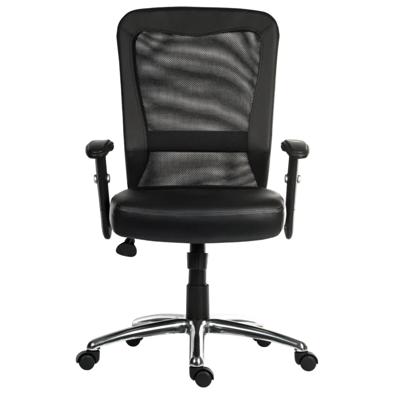 This standout chair features a high aerated mesh backrest surrounded by leather-faced upholstery, creating a visually striking and supportive seat that promotes airflow throughout your working day. Paired with a leather-faced padded seat, it delivers both comfort and easy maintenance, making it perfect for daily use.