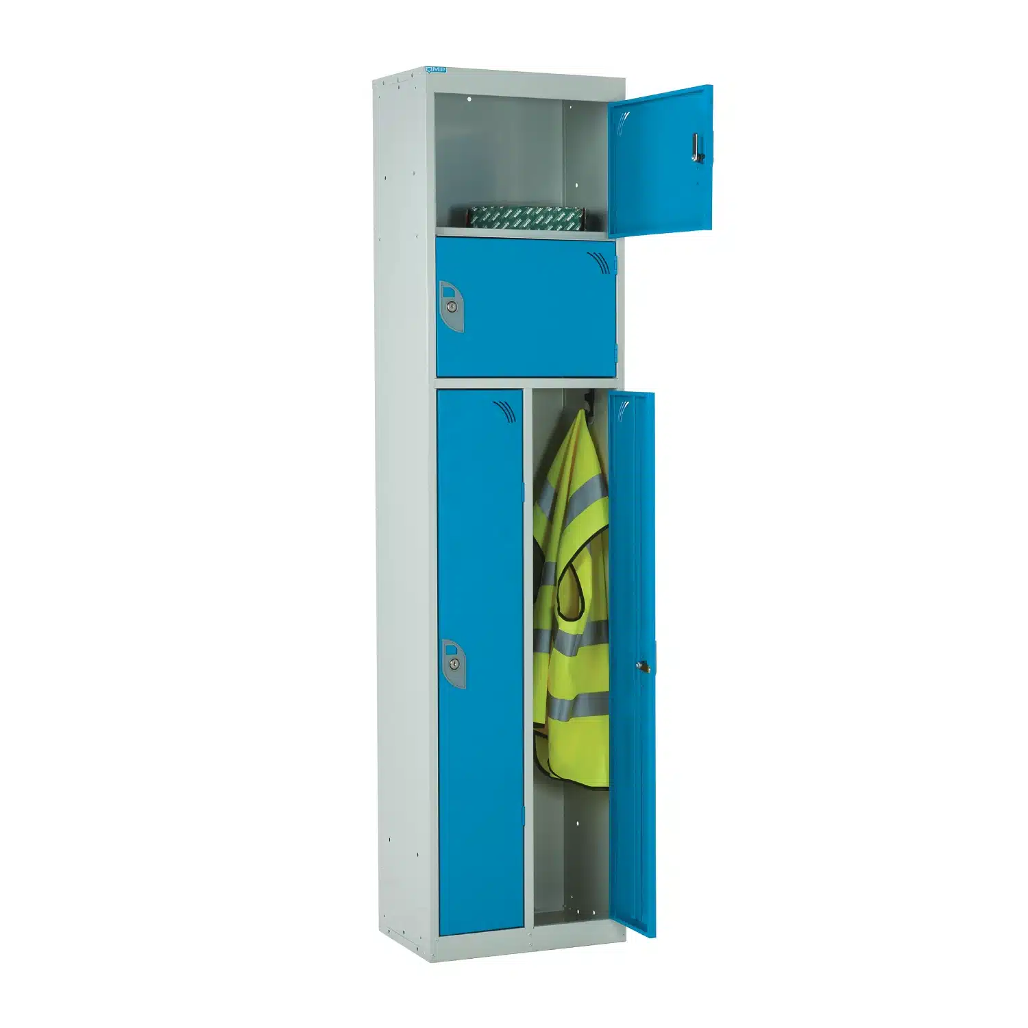 Introduce the QMP Duo Lockers as the perfect answer for workplaces needing to maximise limited space without compromising on employee storage. With two full-width top compartments and two lower slim compartments, they are intelligently designed to solve workplace clutter. They allow staff to securely store clean personal items in the top tiers while hanging workwear, uniforms, or high-visibility jackets in the lower sections.