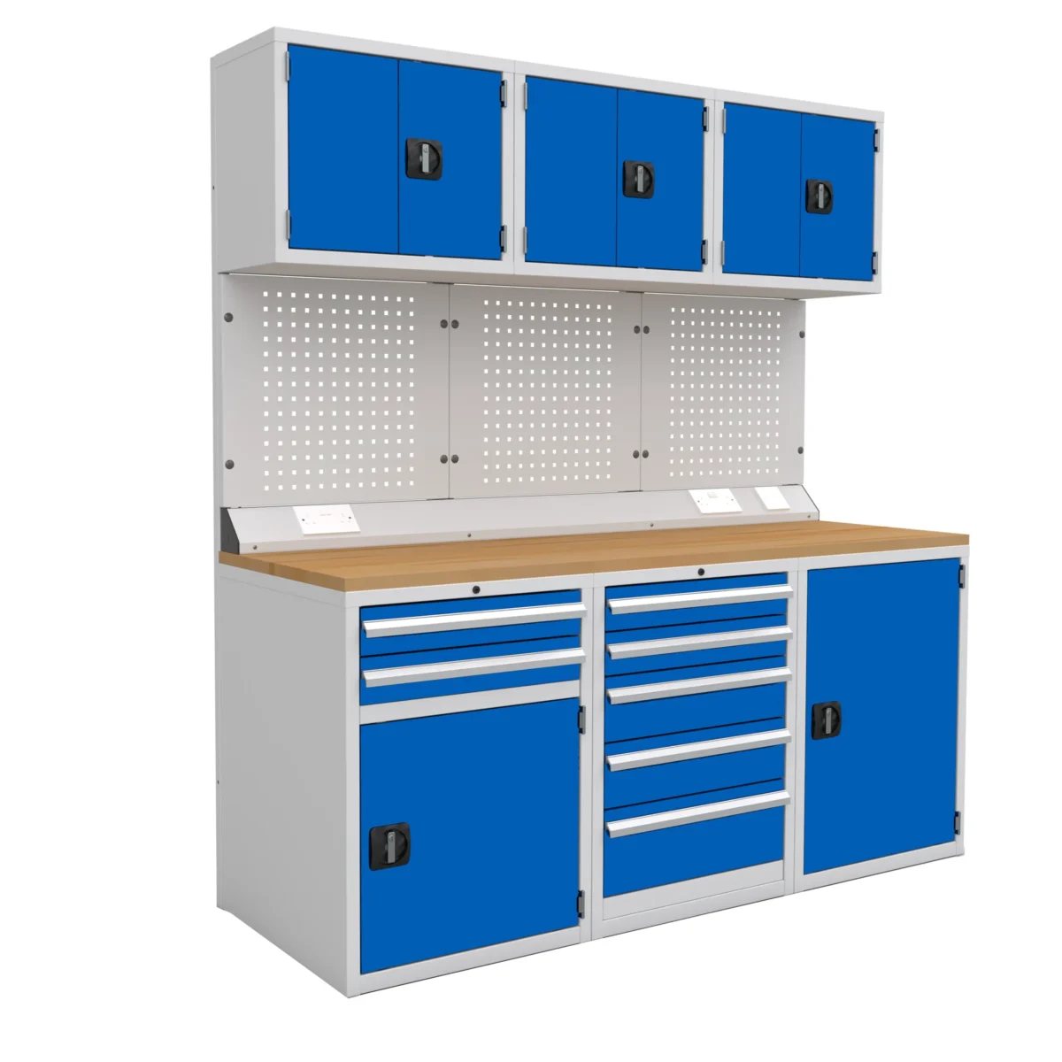 The Modular Kit A includes an optimised layout of drawer and cupboard combinations, overhead storage, and perforated tool panels – everything you need to maintain order in the busiest of workspaces. Whether you’re working in automotive, manufacturing, or general maintenance, this kit helps you create an efficient and ergonomic workflow.
