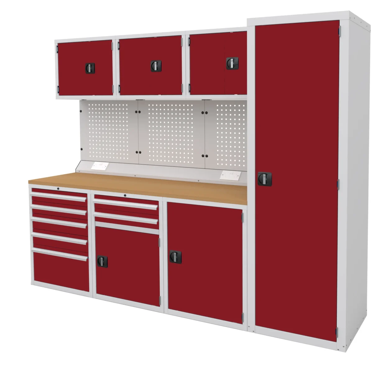 Modular Kit D offers a comprehensive storage solution, combining tall cabinets, drawer units, and overhead cupboards with perforated tool panels and clip kits for unrivalled flexibility. Designed and manufactured in the UK by QMP, it delivers exceptional build quality and a refined, professional finish that elevates any workspace.