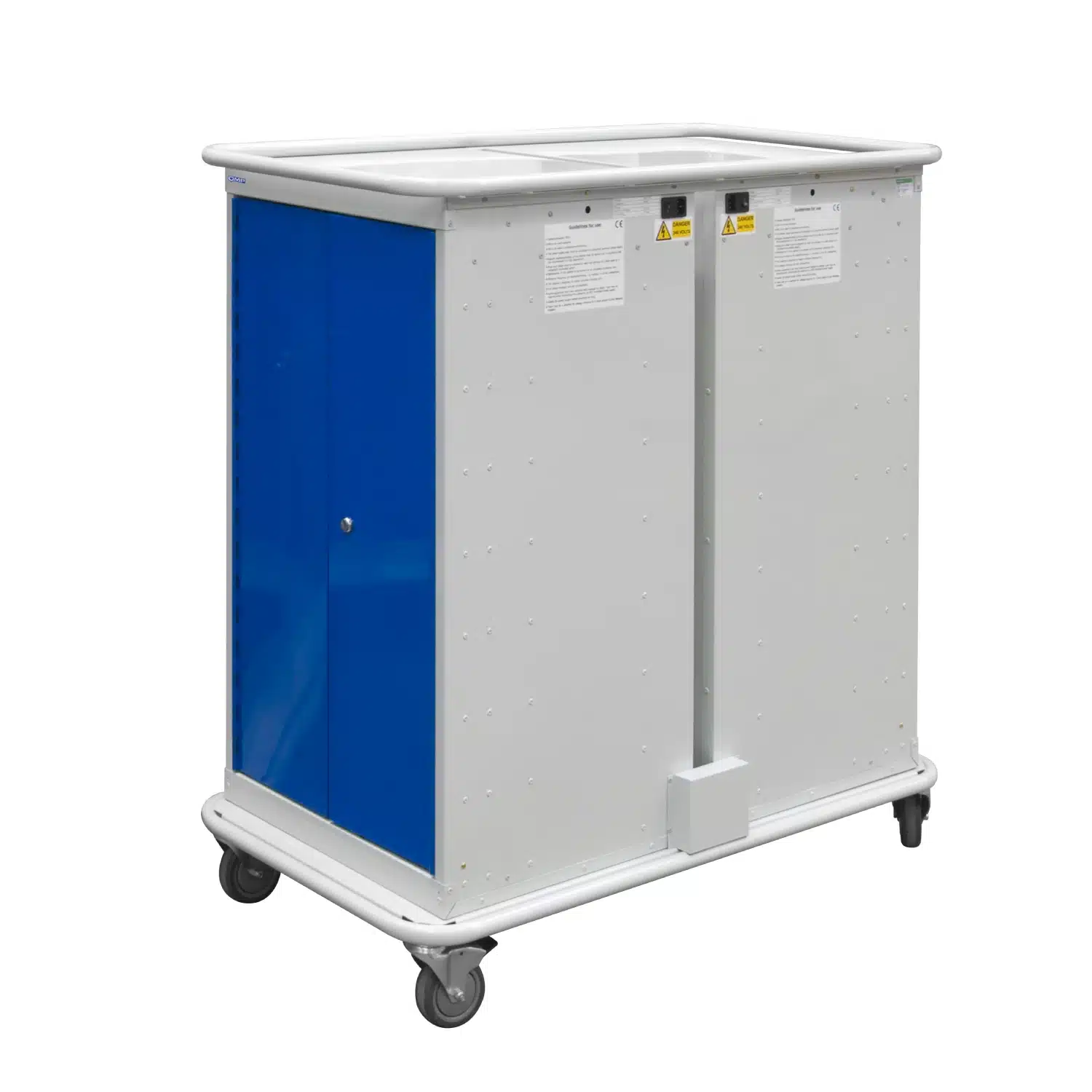 Designed to seamlessly integrate into your current layout, the trolleys are available with an array of vibrant door colour options, including Red (RAL 3003), Green (RAL 6024), Light Blue (RAL 5012), Dark Blue (RAL 5017), Light Grey (RAL 7035), and Yellow (RAL 1018). As your fleet of devices grows, the pre-drilled carcass allows for easy nesting with other lockers. Arriving fully assembled , your new charging station is ready to be deployed the moment it comes off the delivery vehicle in configurations ranging from 8 to 16 tiers.