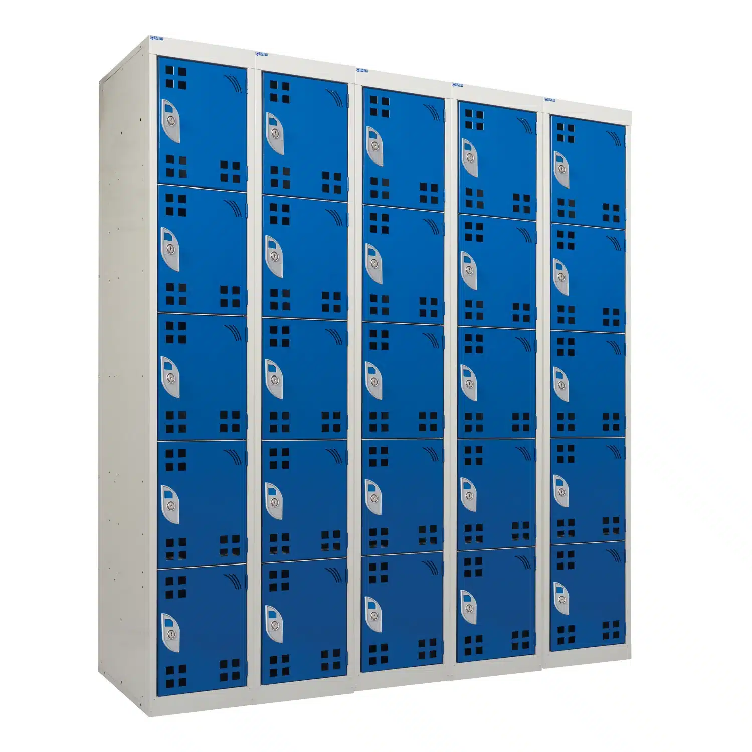 Select fully perforated doors for maximum airflow or solid doors with precision feather-like ventilation slots; both designs promote efficient heat dissipation while protecting contents. Delivered fully assembled and ready to position, the lockers are available in two carcass widths (300 mm or 450 mm) and four compartment configurations (4, 5, 6 or 8 doors). Light Grey RAL 7035 carcasses are standard, with a choice of vibrant door colours to suit your branding or site requirements.