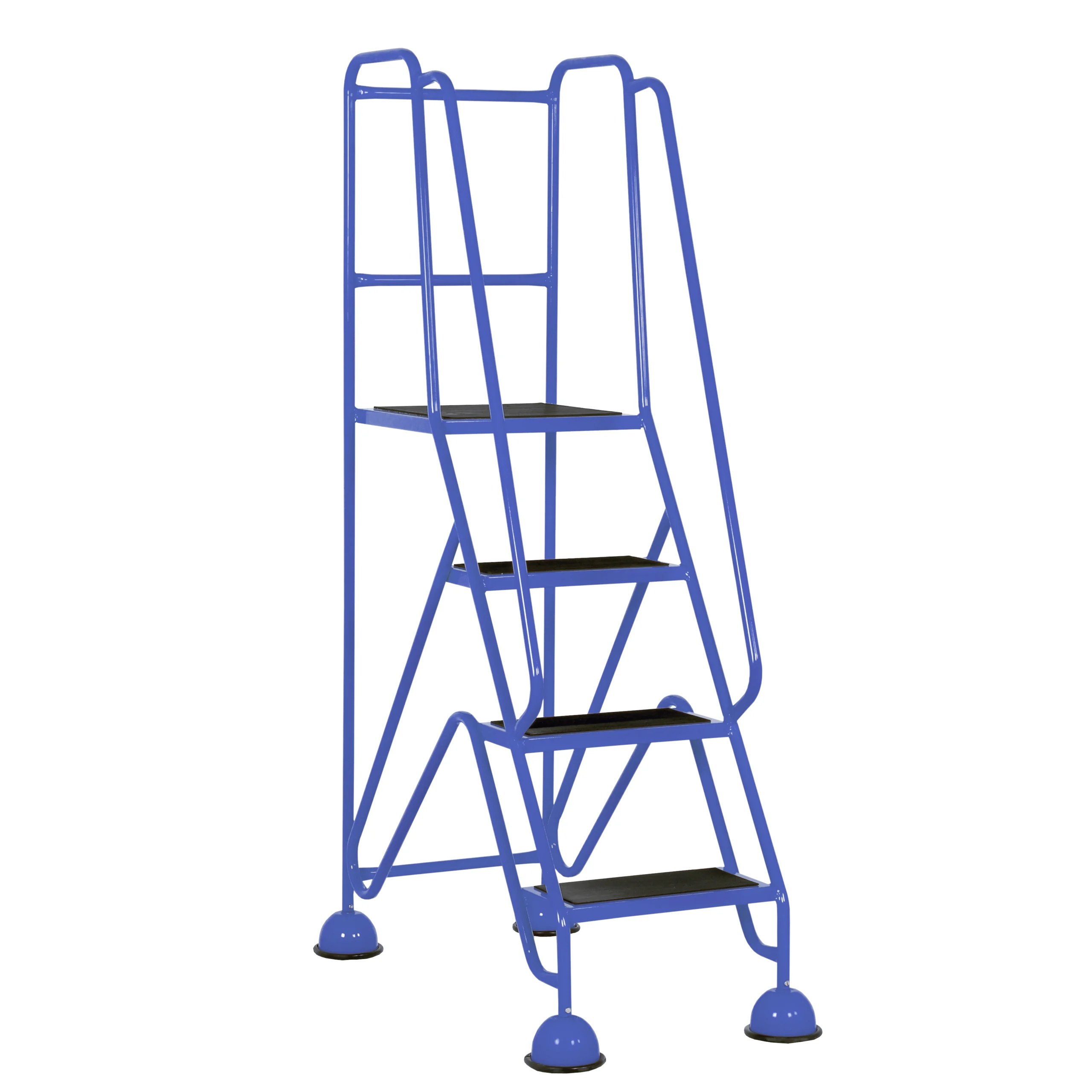 What safety standards do these meet? Our BSI Steptek range is manufactured to meet EN131-7 standards for mobile leaning ladders and steps. They feature high handrails and kickboards to ensure full compliance with UK Health & Safety regulations.