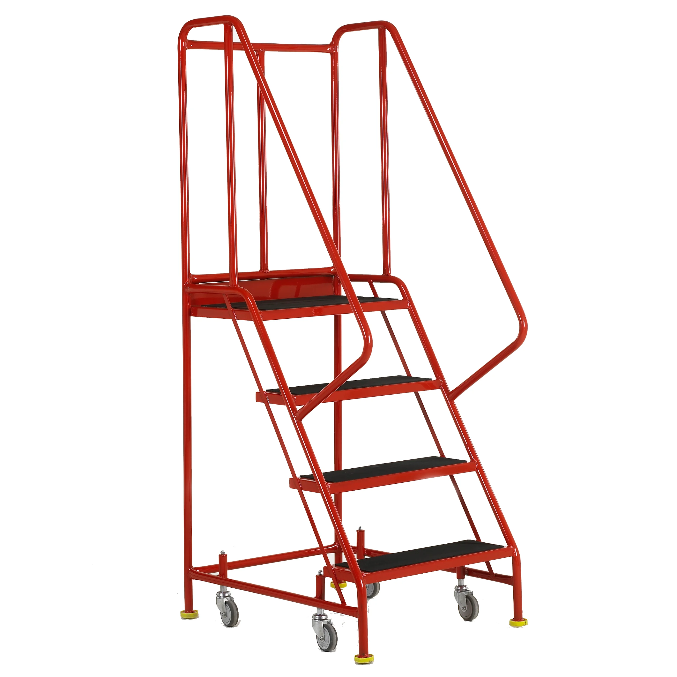 Designed for busy commercial floors, mobility is key. The unit rests on four spring-loaded castors. To move it, simply push it to your desired location. When an operator steps onto the first tread, the castors automatically retract under the weight, lowering the steel feet firmly to the floor. This creates an instant, immovable static base for safe climbing, without the need for manual brake levers.