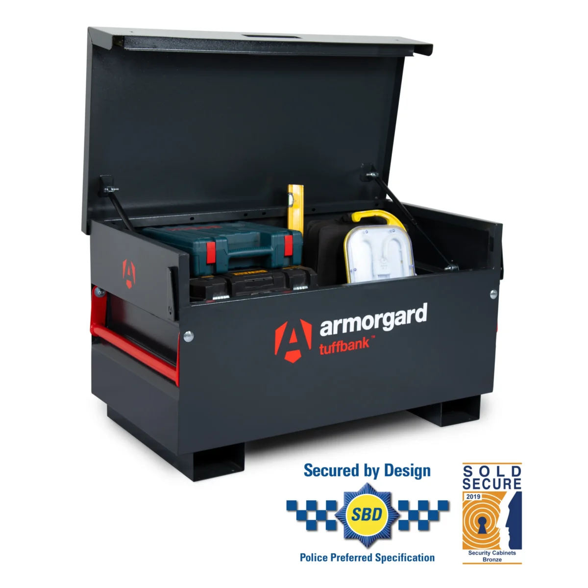 The Armorgard TuffBank TB2 is the UKโs most popular secure storage site box, offering unparalleled protection for tools and equipment. Constructed from heavy-duty steel, this ultra-secure tool box is designed to provide top-tier security on-site. Its external and internal anti-jemmy systems ensure that even the most determined theft attempts are thwarted. In addition, the TB2 is accredited by both Sold Secure and Secured by Design, giving you the peace of mind that this storage box meets the highest security standards.